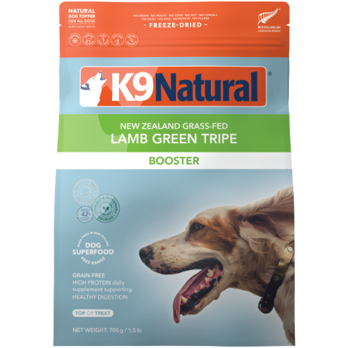 Sourcing only the highest quality New Zealand grass-fed, free-range Lamb Green Tripe, K9 Natural Green Tripe Boosters aid in healthy digestion, nourishing skin & coat, assisting immune response and overall health and well-being.