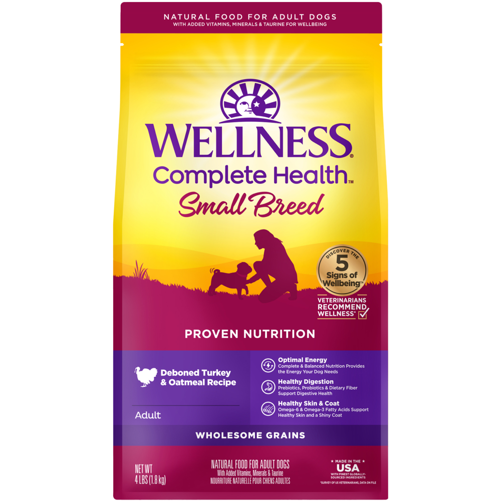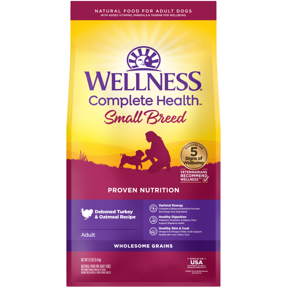 Wellness Complete Health Small Breed Deboned Turkey & Oatmeal Recipe is formulated to meet the nutritional levels established by the AAFCO Dog Food Nutrient Profiles for maintenance.
