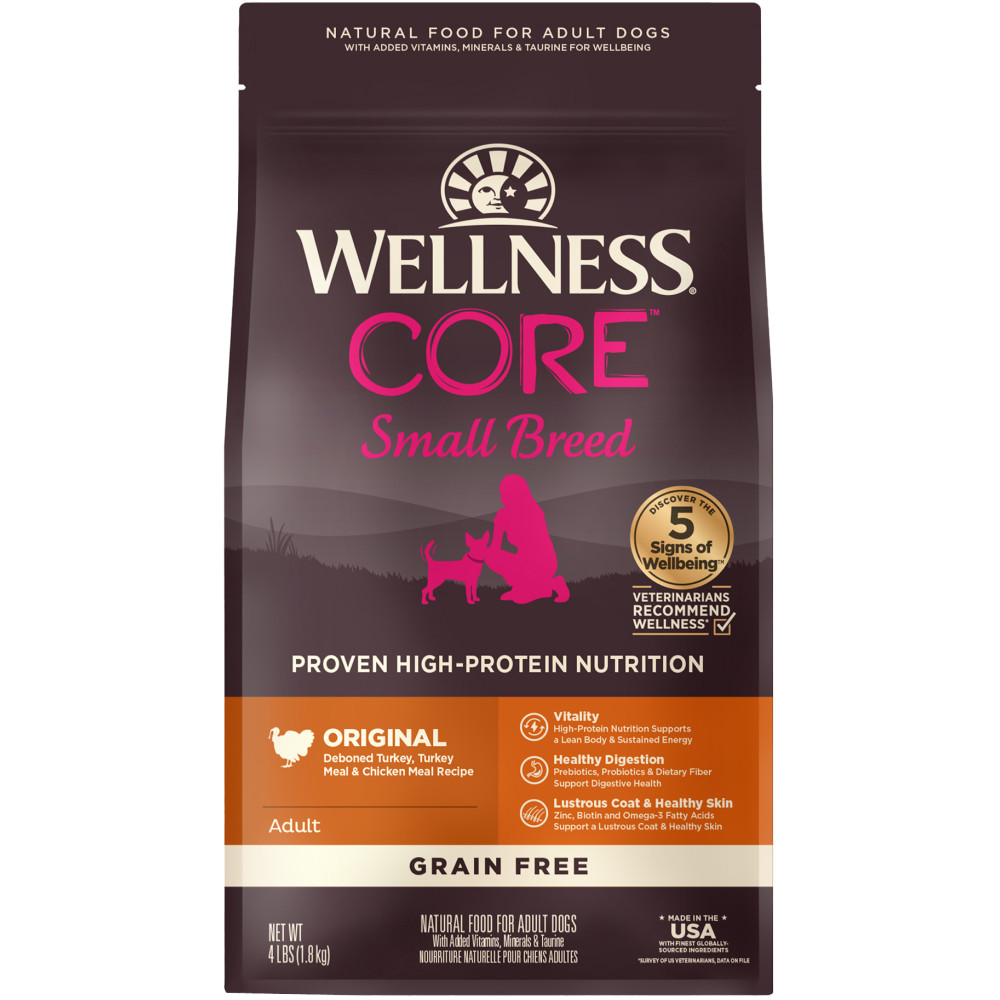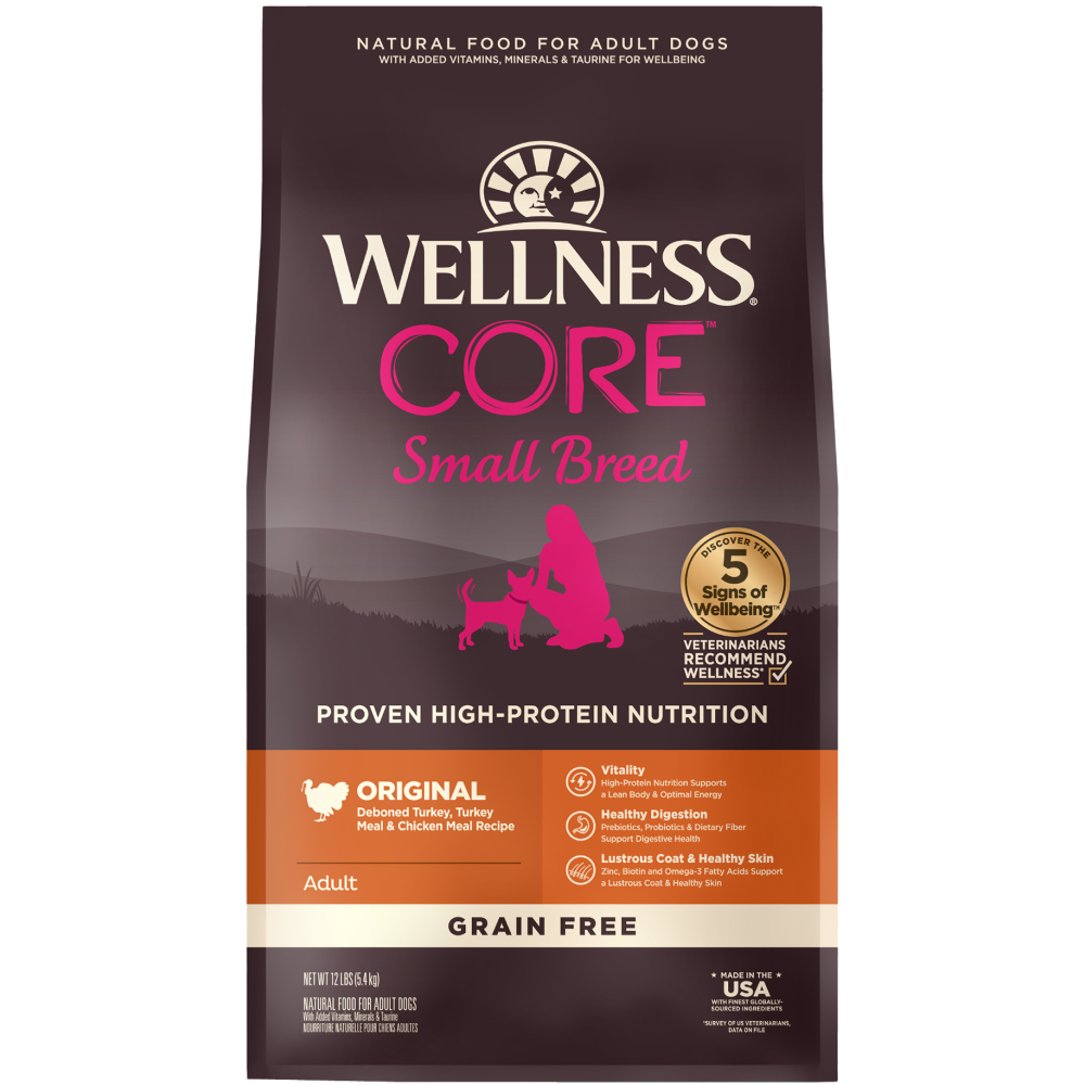 Wellness CORE Small Breed Deboned Turkey, Turkey Meal & Chicken Meal Recipe is formulated to meet the nutritional levels established by the AAFCO Dog Food Nutrient Profiles for maintenance.